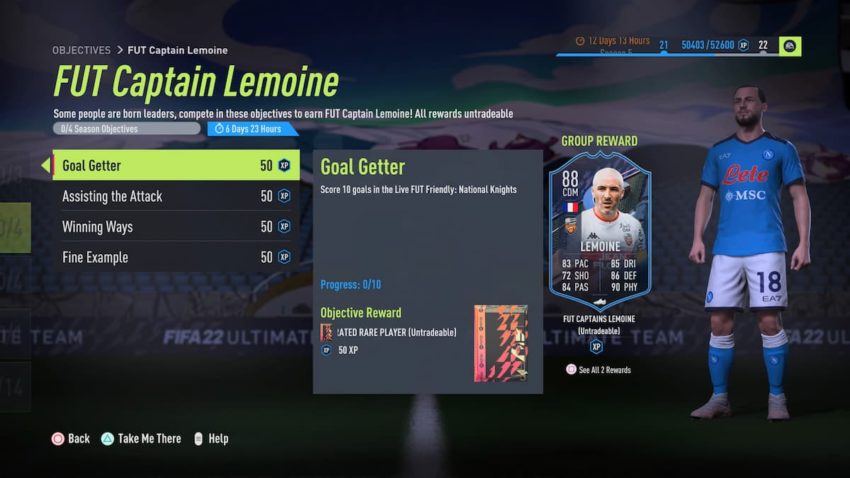 Complete all four and you will receive the 88 OVR Lemoine and 300 XP.