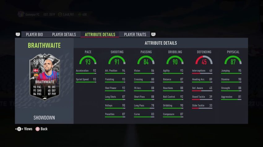 On April 2, EA Sports and the FIFA 22 team continued the ongoing Showdown Series in FIFA 22. This promo puts two cards up against each other whose teams are about to play in real life. Depending on how the real-life contest goes, the in-game cards can get a +1 or +2 upgrade. The +1 comes from a draw, while a real-world win gets you a +2. One of these Showdown cards was dropped into Squad Building Challenges and it’s Barcelona ST Martin Braithwaite. Let’s take a look at how to add him to your club.