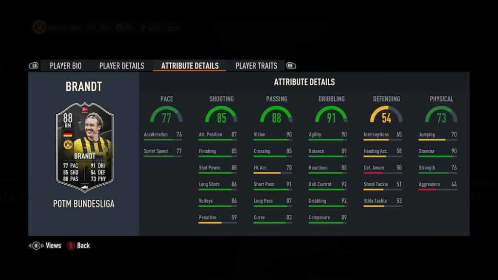 POTM Brandt possesses 4-star Skill Moves and Weak Foot ratings