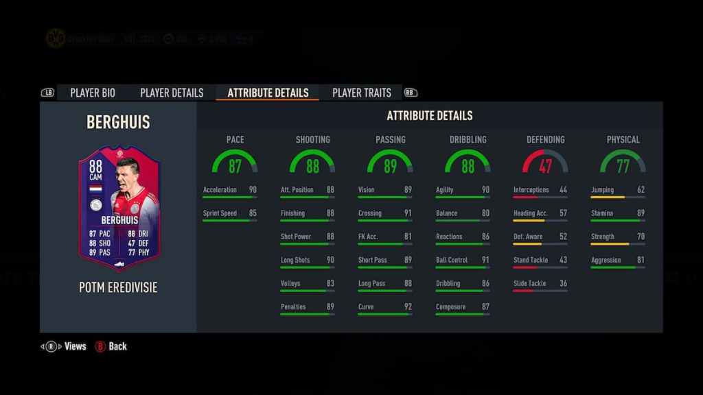 POTM Berghuis possesses 3-star Weak Foot and 4-star Skill Moves attributes.
