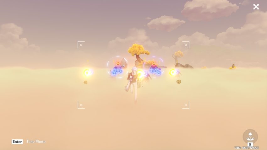 • Unleashes 4 Elemental Explosions at the active character’s position, dealing Hydro, Pyro, Hydro, and Cryo DMG respectively to nearby opponents.