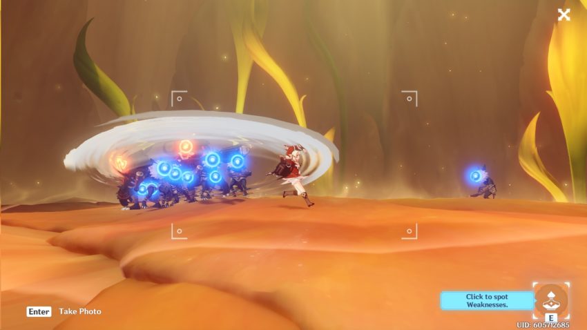 In combat, you can move your camera around and snap a photo to take a picture of the weaknesses of the enemies.