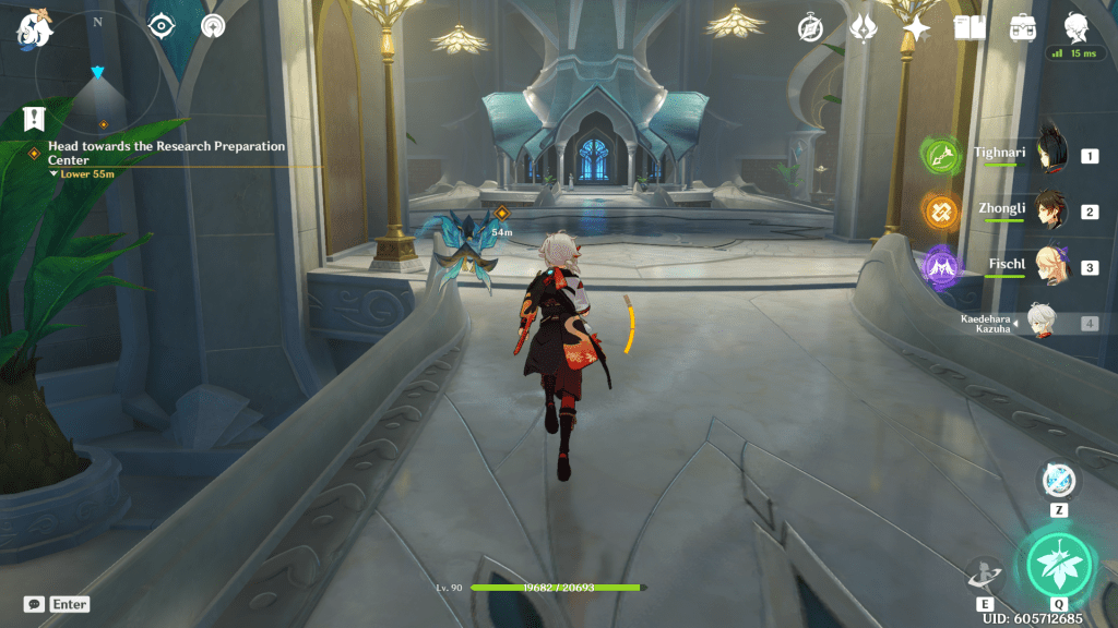 The Matra finds a suspect named Narendra. You and Alhaitham begin questioning him, but you don’t get any important leads. Talk to Alhaitham, who reveals that Siraj was his former classmate. Head to the Research Preparation Center next, located inside the Akademiya.