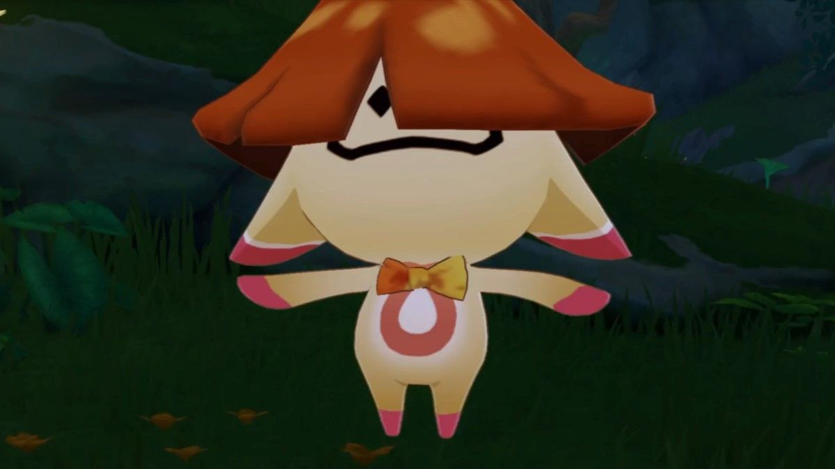 Glide down to the floor of the cave and approach the mushroom beneath the little house to talk to Aranakin. Walk up the nearby vine then, from the top of the vine, jump and glide from leaf to leaf until you’re at the top of the tallest leaf in this cluster. From the top of this leaf, you can jump to the ledge on the west wall of the cave. Follow that ledge then go up another vine to reach the marker, then follow the tunnel and use the Kusava and your Dendro character to clear the exit of the cave.