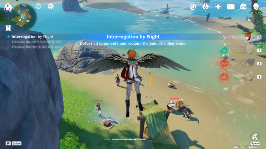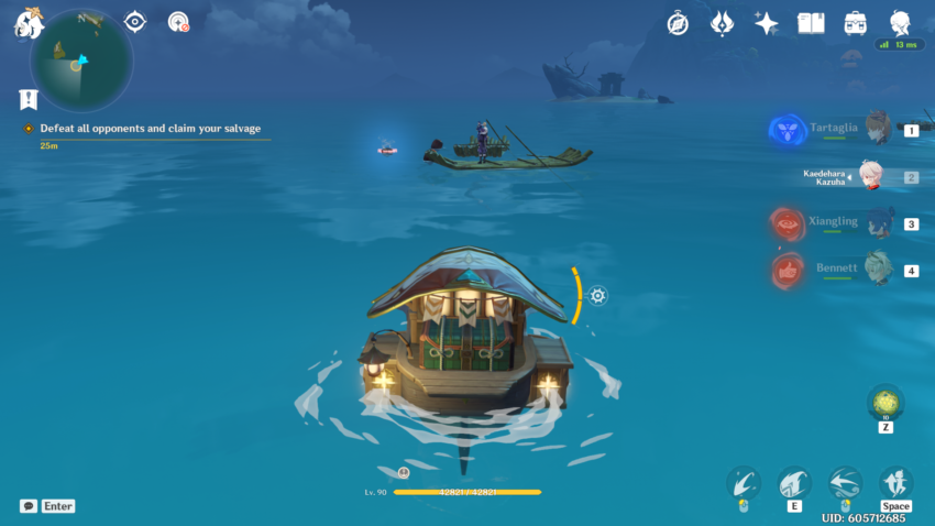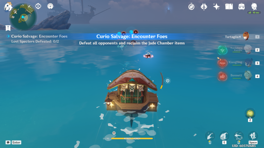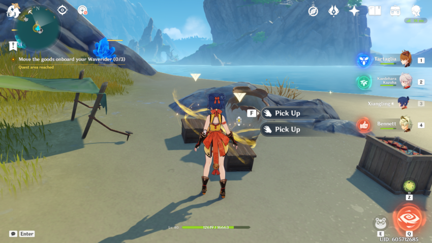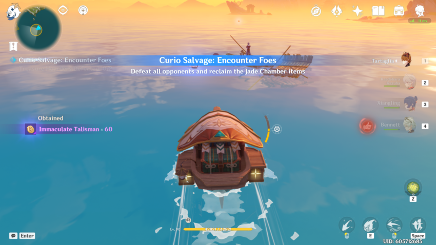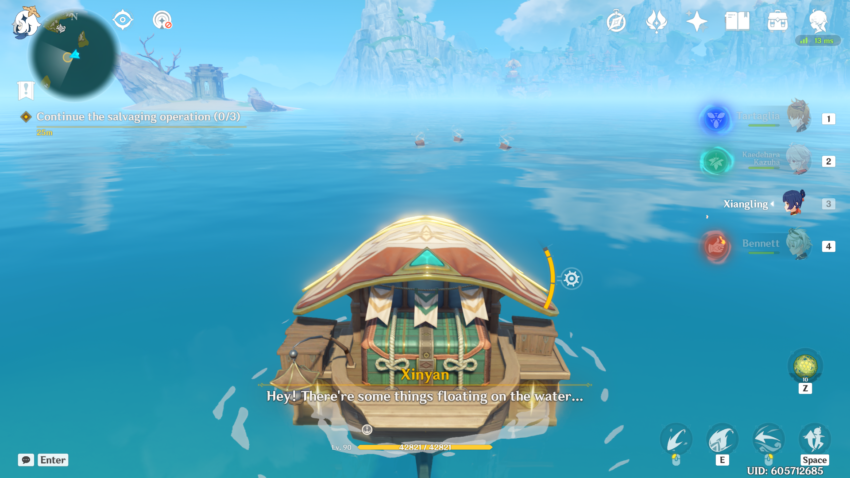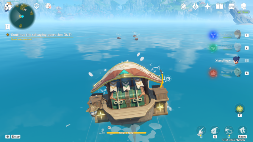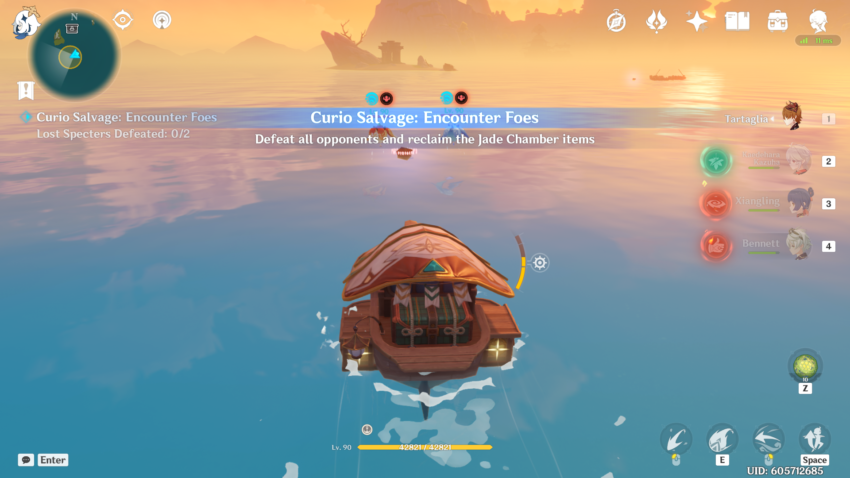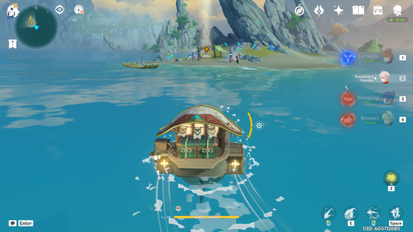 When you begin this event, you’ll have to go through a small quest, “Petal-Lit Ships For the Moon.” Teleport to the Jade Chamber and talk to Ningguang to start the quest. She’ll send you to Beidou’s ship, The Alcor, where you’ll set up your Waverider.