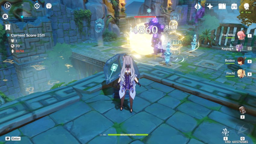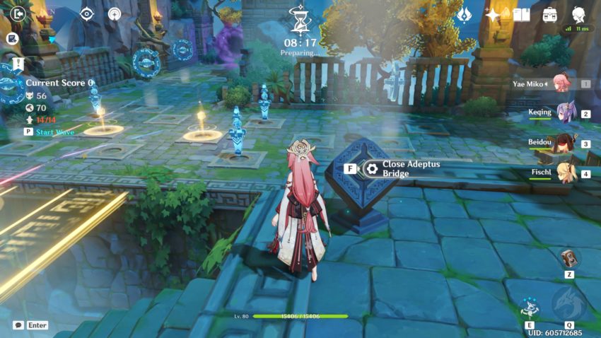 We bring four Electro characters here and put the Cryo towers so we can inflict Superconduct. This will let Crack Shot deal bonus damage, making it possible for us to earn 2,500 points by simply applying Electro and closing the bridge when necessary.