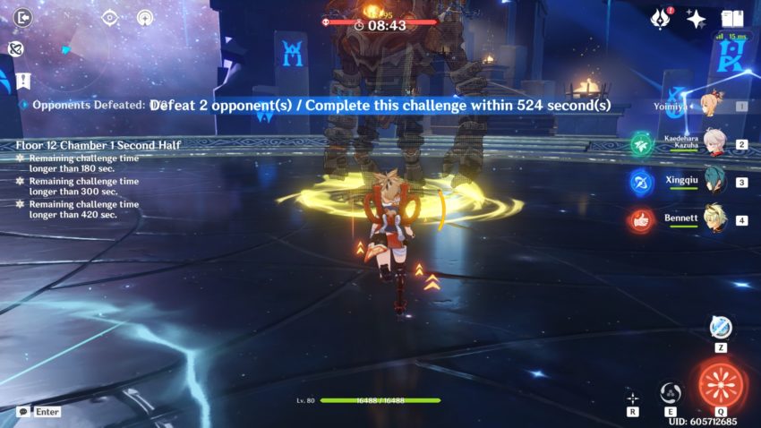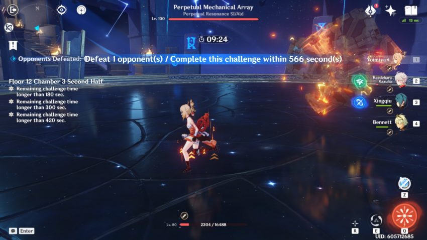 - Yoimiya: Single-target damage is highly valuable this floor, and the Blessing of the Abyssal Moon buff is almost tailor-made for her. Yoimiya’s main damage source is through her Normal Attacks, so she’s a perfect addition to your team. A free-to-play friendly alternative is Yanfei.