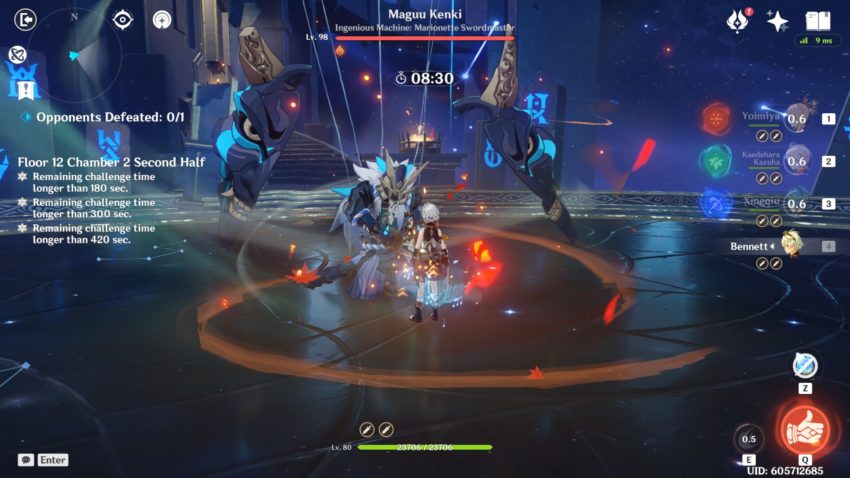 You can use this phase to your advantage. You can see in the image above all my Elemental Bursts are down. But, by striking the boss in his invulnerable phase, you can generate energy particles to charge up your Elemental Bursts. This makes it so you can be a little less mindful of what Elemental Bursts you use in the previous chamber.