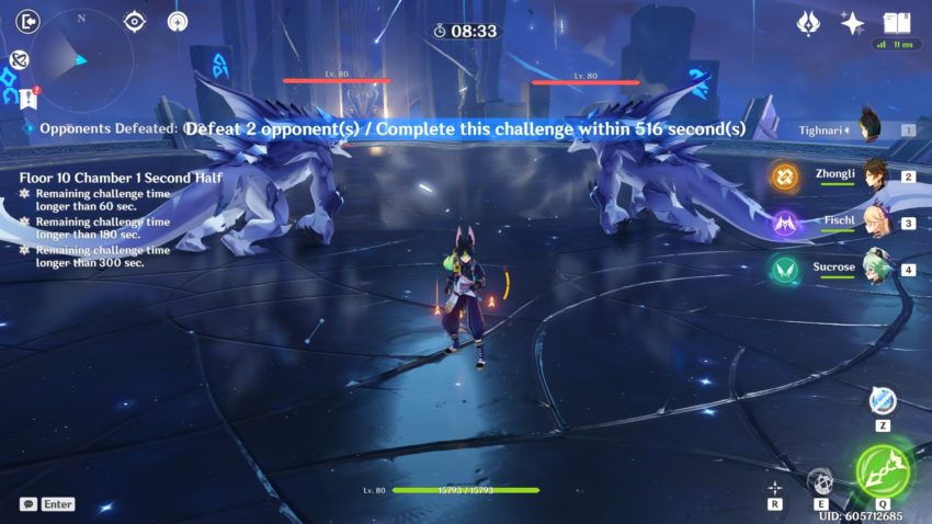 The second half of Chamber 1 consists of two Primordial Bathysmal Vishaps. If you are bringing Tighnari, it’s recommended you take him on this half as his single-target DMG is a little higher. These enemies are a little tankier, so if you don’t have Tighnari, bring strong single-target DMG like Yoimiya or Hu Tao.