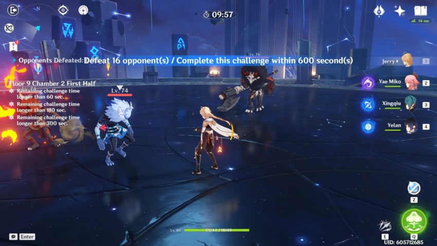 In the second half, there will be fifteen Eremites that you’ll defeat. They will spawn in three waves of five enemies each. You can see in the image above that three Eremites will spawn together. If you are having trouble defeating these enemies, you can head to the line of three enemies and the other Eremites will walk toward you. Bringing a CC unit like Sucrose, Kazuha, and Venti will help greatly.