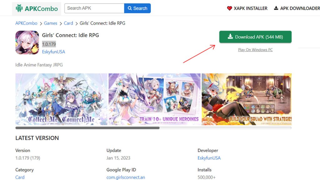The Girls’ Connect: Idle RPG APK is available on a variety of APK sites, but for your convenience, we have included a link to APKCombo’s download page While the game is originally meant to be played on the Android operating system, it is also possible to play it on your Windows PC via the use of an Android emulator such as BlueStacks or LDPlayer. You can download the Girls’ Connect: Idle RPG APK here: