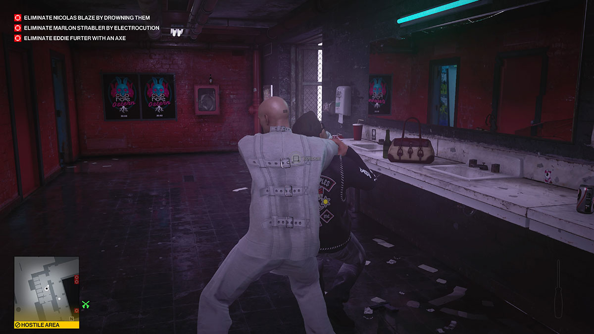 The entire map is littered with monkey toys that will clang symbols if you get too close to them. This draws in guards and can be a real pain if you don’t have a route forward planned. Those toys, and the fact that Agent 47 is in a straitjacket for all three levels, make the Escalation feel like a wild fever dream that the protagonist is going through before he awakens in the final story mission.
