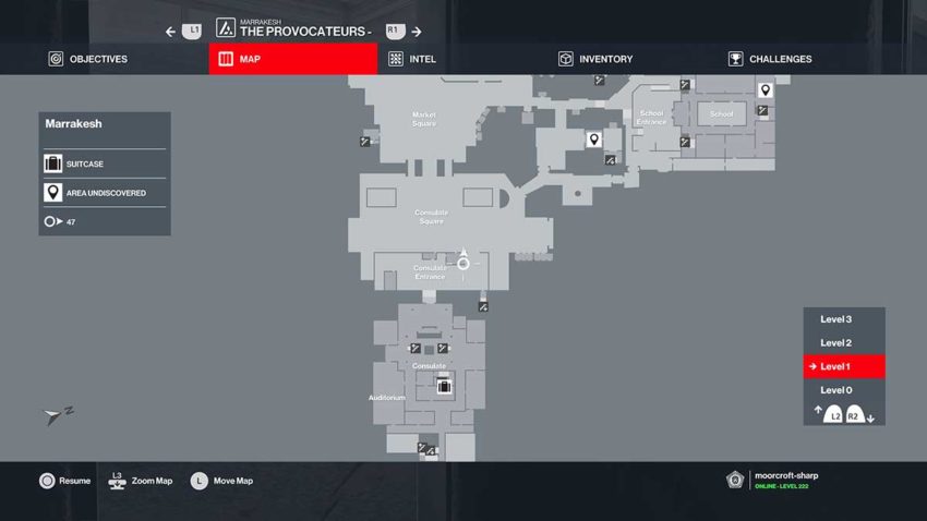 With your new disguise on, head into the embassy. Stick to the right-hand side of the main entrance because there’s a camera covering the left. There’s a guard in the embassy who patrols about the place and can see through this disguise. If he’s sitting down to your right, you should be fine. If not, wait a bit for him to sit at the front of the embassy before running down to the back of the building.