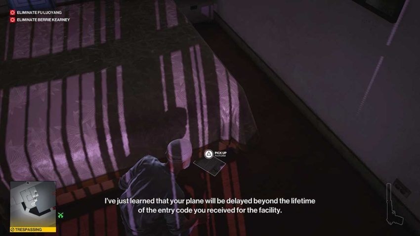 Leave the apartment through the door and run back to the restaurant. You should be able to see The Board Member throwing up in the bathroom by now. Run in, subdue him, hide his body in the container, and take his disguise. Before you go into the ICA facility though, it’s time to take out your first target.