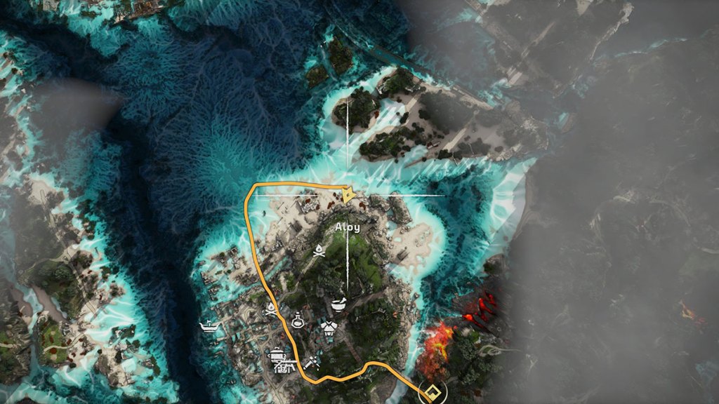 You can uncover three Brimshine locations while playing through the first main quest in the Burning Shores DLC, To The Burning Shores. After you meet up with Seyka, you’ll head to the tower with the weapon at the top. The Brimshine is inside this tower as you climb. See above for a map reference for the tower.