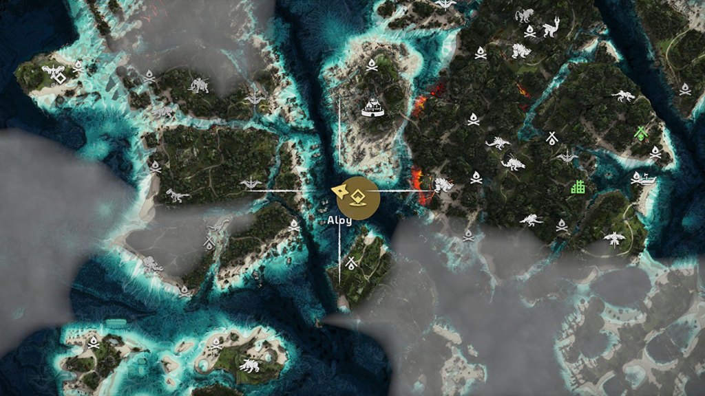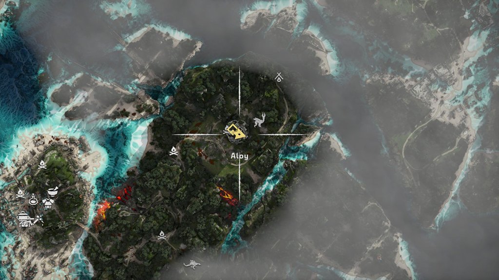The island in the bottom left-hand side of the Burning Shores map, which doesn’t have a name, holds two Brimshine Slivers for you to harvest. See the above image for a map reference for this island. You’ll visit this location as part of “The Splinter Within” side quest. This is the second island you’ll likely visit, where you must kill three Waterwings. You can find one Brimshine Sliver inside a small outcrop in one of the rocks on the shoreline on the island’s northern beach. The second Brimshine Silver is on the eastern shore, up against another rock just below a ruined building.