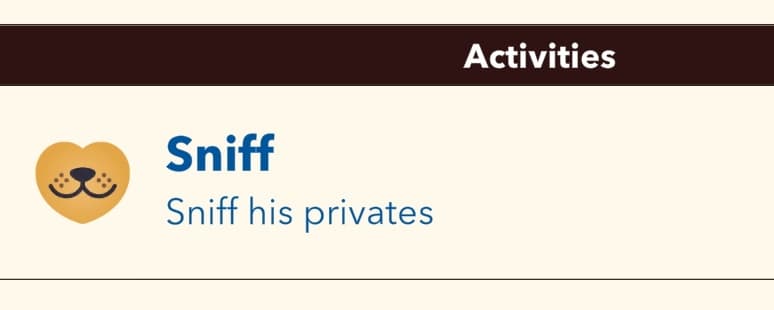 There are several other animals you can encounter in DogLife, such as other dogs in your neighborhood, in your household, or they might be in your pack if you’re a stray dog. Whenever you click on any of them, you’ll have several options to interact with them, and one of those options is to sniff them. When you choose to sniff that animal, you’ll be adding their scent to your Scent Database.