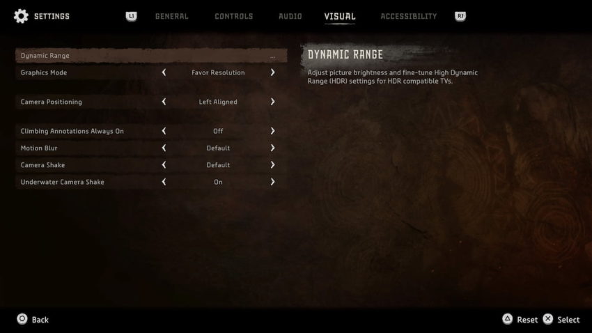 Another alternative is to jump into the Dynamic Range option underneath the Visual tab. From there, you’ll be able to change the Contrast setting, which lets you adjust the difference between the lightest and darkest areas of the game. These are the closest settings you can get to find a brightness setting without one being available.