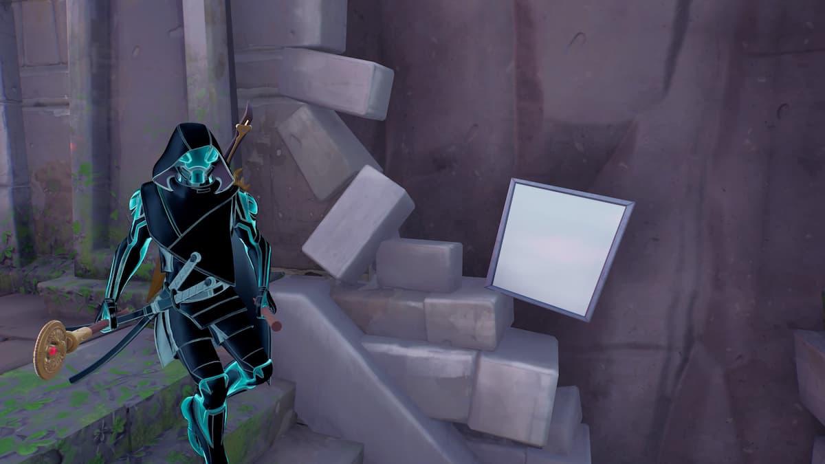 Similar to the last two puzzles, you can find this next one in the Shuffled Shrines point of interest between Rocky Reels and The Joneses. These mirrors are located in a shaft in the bottom left-hand corner of the location. You’ll know you’re in the right place when you spot the first mirror alongside its staircase (as shown in the featured image above).