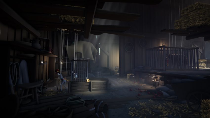In a fairytale-like setting, you’re a child on an adventure in the outside world. However, to break out, you’ll need an apple from the rats. In the cutscene, one of the rats comes up to the cage and offers to give you an apple. This isn’t as glamorous as Cinderella, but you must aim the apple towards the left tool rack. Throwing the apple there will cause a ruckus as the spade falls to the ground. This prompts the ringmaster to approach and put the tool back in its place.