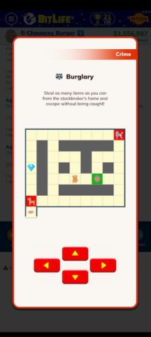 There are multiple criminal activities you can do in BitLife. One of these activities that you can directly profit from is burgling a home, which is robbing it of any items you can find in it. Not every home will have the same items, and the routes are a bit different and randomly generated, but the general concept about how you steal items and escape work the same way. You’ll want to burgle homes fairly often if you join the Mafia, and you’re just starting. It’s a great way to gain a reputation with the family when you start. Alternatively, you might be burgling a home for some quick money, or to complete a challenge.