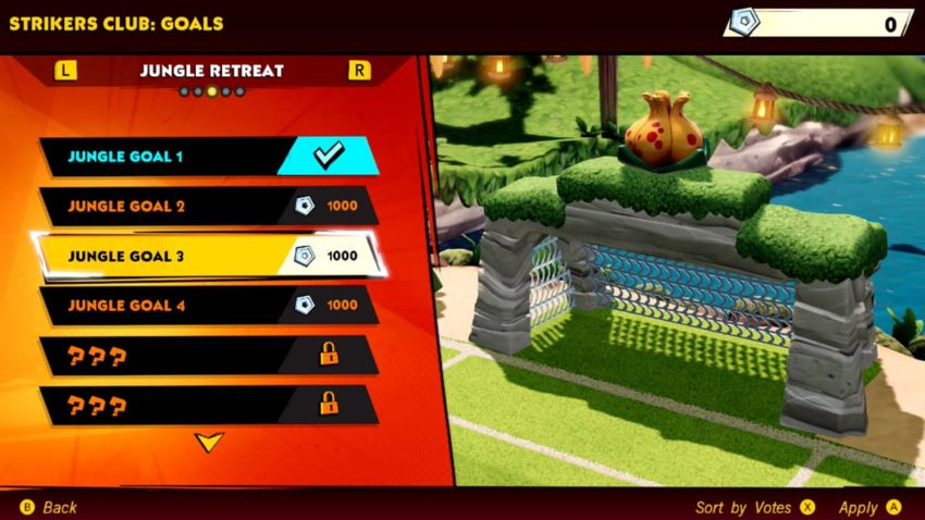 On this next page, the owner of the Striker’s Club will be able to change the theme, fence post, goal-line decoration, goals, and field design. While other members can not make the changes themselves, they can vote for the features they want to have represent them.