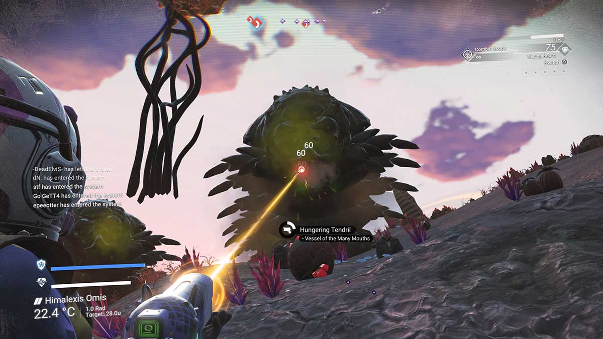 All you need to do is repeat the process of finding a Titan Worm Burrow, heading over to it, and killing all the Hungering Tendrils around it. You should be done by the time you’ve visited six or seven of them. To make life easier, consider building a base so that you can summon an Exocraft to help you get between each Titan Worm Burrow without burning launch thruster fuel. We found another player’s base and summoned an Exocraft from there.