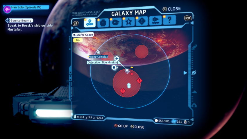 If you want to work on Bounty Hunter Hunt, you’ll need to unlock Niima Outpost on Jakku. Once those have all been completed, you can grab the Bouncy Bounty side mission, and you need access to Mustafar. You will need to be a Smuggler character to access the quest.