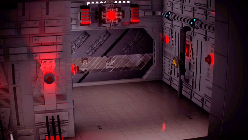 The civilized way to help Luke and Leia get through the locked doors is to smash the security consoles, then build a grabbable block from the debris, and move that block in order to make a red button appear on the floor nearby. So, don’t do that. For this Challenge, you need to open the door in the uncivilized way.