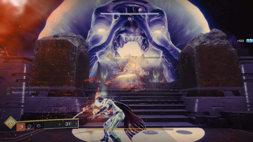 When you begin the ritual, you will need to face all of the Nightmares you’ve fought through at the other ritual points. In addition, you will encounter the Fanatic, Kethiks, and Ghaul again. When you initially start the fight, the Fanatic arrives, and you can do damage against it using your standard weapons. However, that won’t remain the case, and you will need to grab the Scythe from the Harvester to damage the Fanatic.