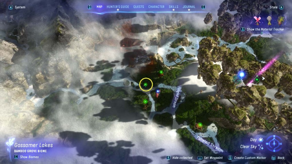 The Finding Home – Part 2 exploration quest in Avatar: Frontiers of Pandora can be found relatively close to where you complete Part 1. It’s on the southwest side of the map at the Gossamer Lakes domain within the Bamboo Grove biome. You’ll be looking for a Computer Terminal (marked in the image above) on the edge of the Tangled Stream. Once you’ve found this computer Terminal you’ll need to hack it, and this will provide you with the Finding Home – Part 2 quest and work order notes.