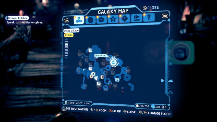You can find this mission on the east side of the Ewok Village on Endor. You’ll need to speak with the mission-giver using a Protocol Droid. Next, you’ll need to grab the flowers from Naboo, Yavin, and Takodana, which means you’ll need to unlock these planets. You can unlock them by progressing through Episode I: The Phantom Menace, Episode IV: A New Hope, and Episode VII: The Force Awakens.