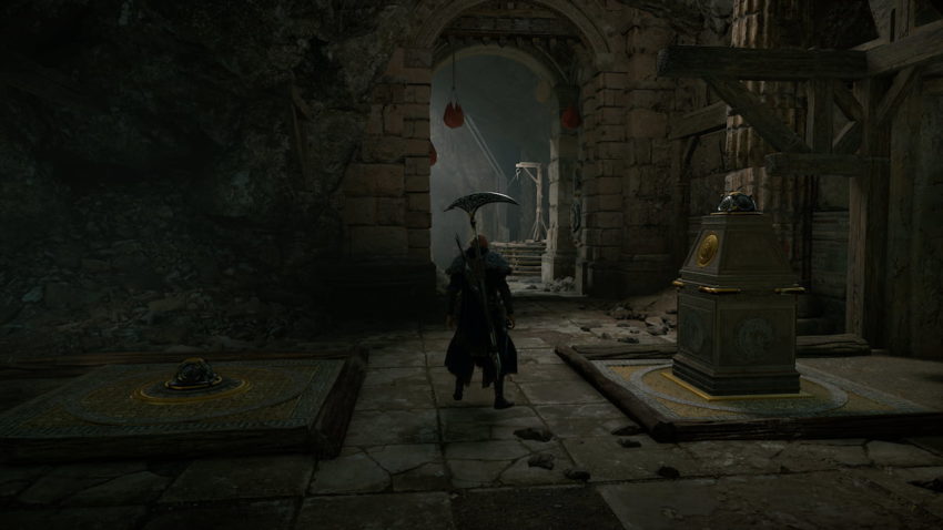 Once you’ve explored the Tomb, collect the key at the back of the chamber, and continue through the final door. There will be a chest protected by a bobby-trapped floor plate that you can obtain, collecting the Fallen Tomb cloak.