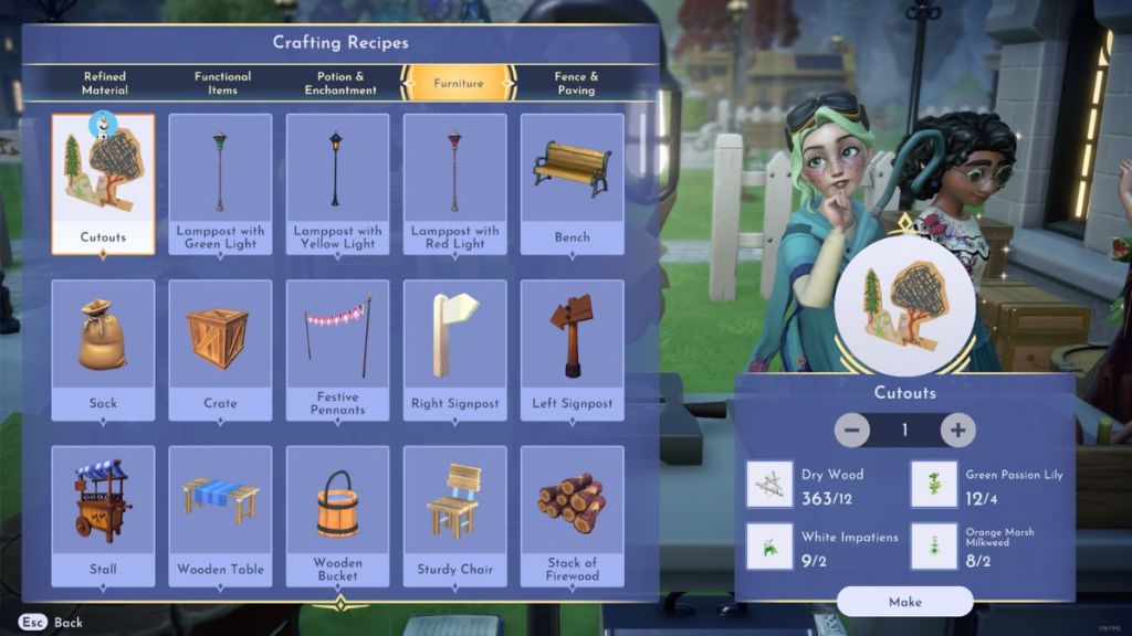 Dry Wood can be found in the Sunlit Plateau and the Forgotten Lands. Passion Lilies can be found in Frosted Heights. White Impatiens can be found in the Forgotten Lands. Finally, Orange Marsh Milkweed can be found in the Glade of Trust. Once you have all the required items, craft the cutouts for the set at a crafting station.