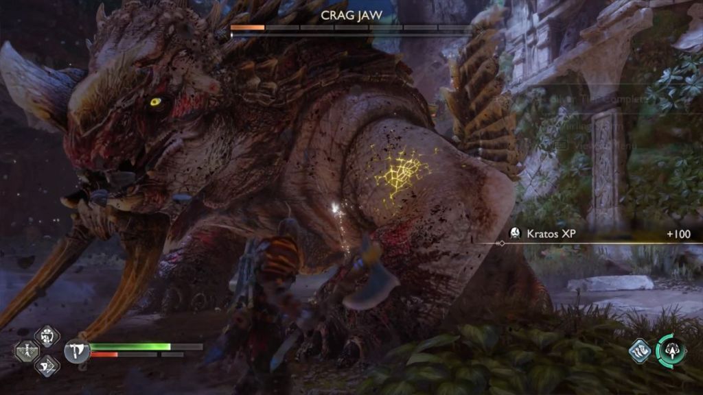 The source of the tremors is a Drake by the name of Crag Jaw. It’s a big, scary monster, but not all that difficult to defeat. It has weak spots on its forelegs, but it moves pretty fast for a creature of its size, so hitting those weak spots is pretty difficult. Fortunately, you can damage it anywhere on its body, so don’t worry about hitting those weak spots. The important thing is to dodge its attacks, so make sure you roll to the side whenever you see the telltale yellow or red circles. Other than that, you can just lay into it with every attack you have at your disposal. It gets a little more aggressive once its health is below 50%, but you can still dodge its attacks in the exact same way.