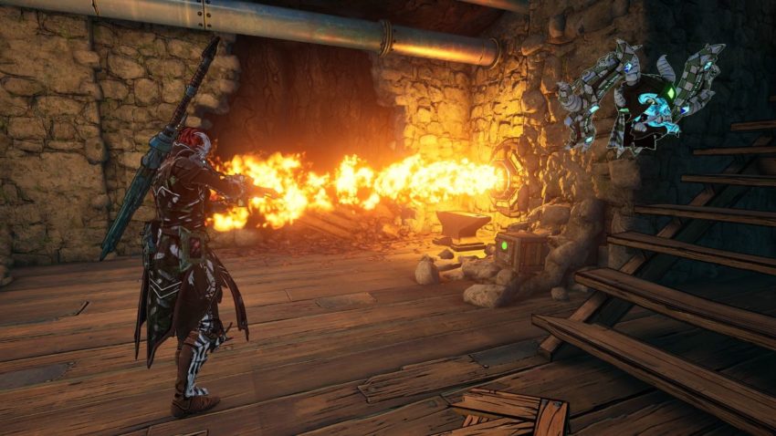 To start the quest, make your way to the forge of Tangledrift. The forge is very close and requires you to hop across a few mushrooms. Once there, head inside and talk to the elder wyvern. After talking to the elder wyvern, go through the door to the left and down the stairs to the basement. Go through the basement, dodging all of the fire traps, and pull the lever at the end. This will shut off the machine.