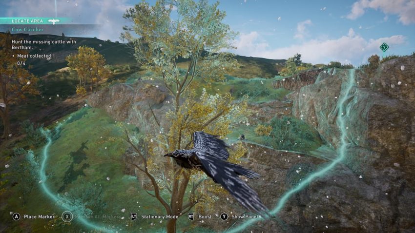 Once you reach the other side, Bertham will inform you this is where they dispersed. You’ll have to search the area to find the cows, and using your raven makes it even easier.