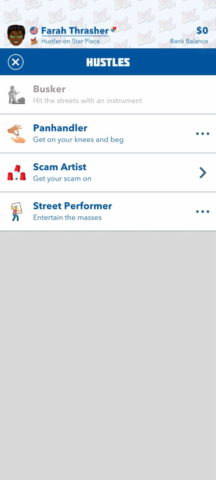 The first thing you will need to do is make sure your character is born in California, in the United States. You will likely need to make a new character to accomplish this. We recommend starting in the city of Los Angeles. After they’re born, you will need to wait until they reach age 18 to work as a scam artist, allowing them to Panhandle. You can find the Street Hustler job under Special Careers.