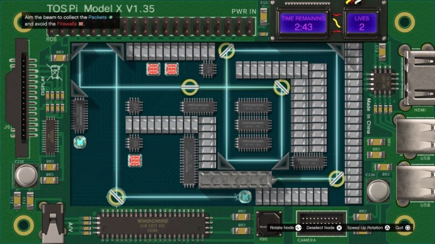 After waking up in the van, you will be tasked with diffusing a bomb. Bring up your phone to start the bomb diffusal minigame. Completing the minigame is pretty simple. You need to guide the laser through the maze of mirrors and destroy the blue data packets. Destroying the red ones will lead to you failing.