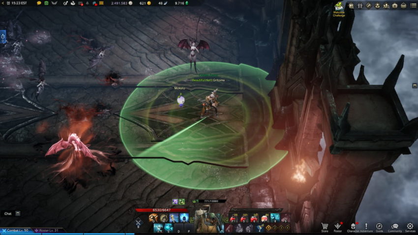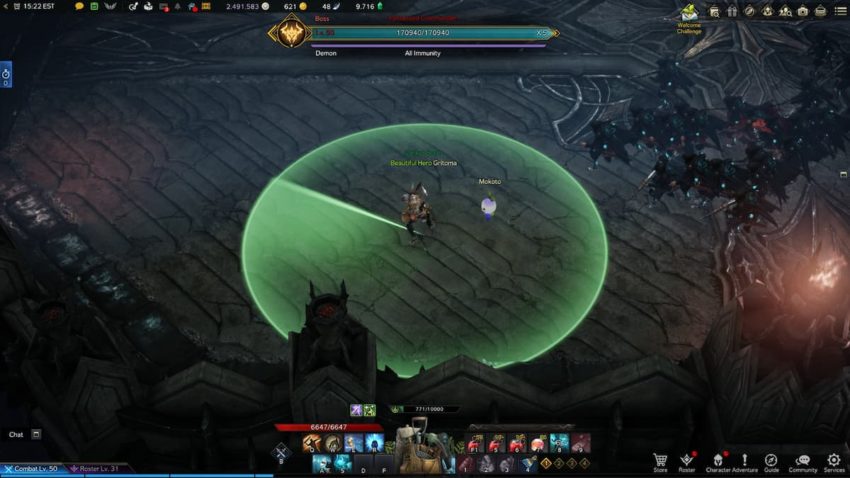 Talking to Ganecron is required to check in on him, which will allow them to progress further up the tower to find Kangal. This need for conversation is reflected in the orange dialogue symbol floating above Ganecron’s head — the type of interaction in Lost Ark that displays a progress bar and takes two-to-three seconds of uninterrupted input to perform.