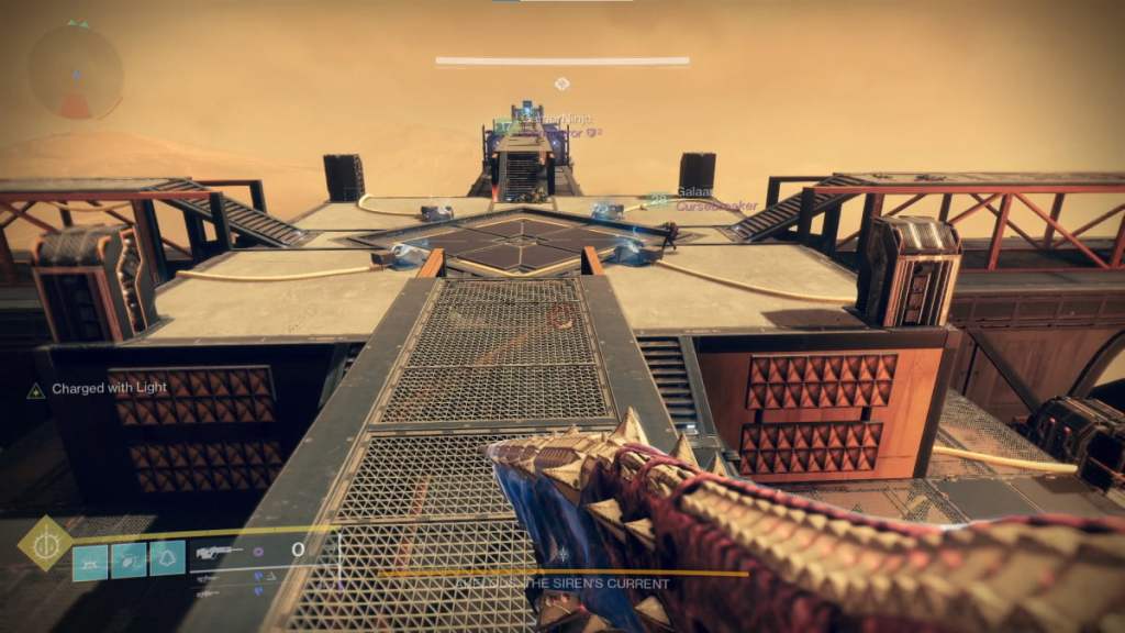 When you reach the top of the Spire, you have your first boss encounter against Akelous, Siren’s Current. It will be at the center of the arena, and you’ll need to defeat it to progress forward. You can start the encounter by shooting it at any time.