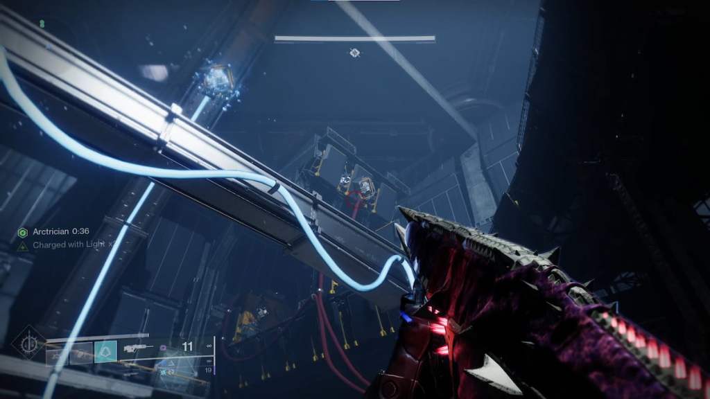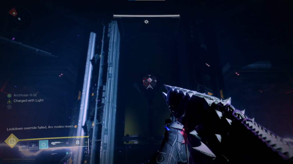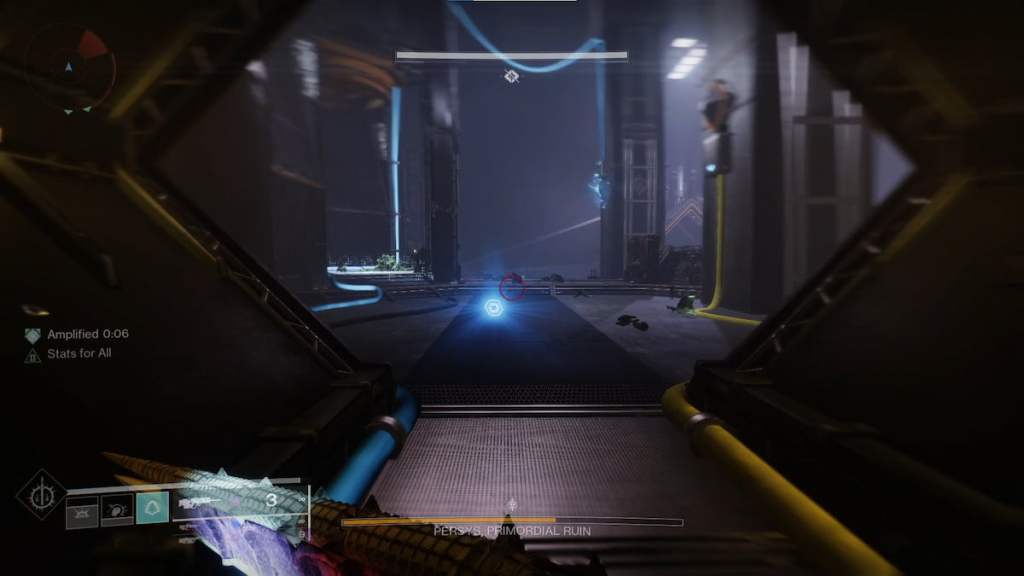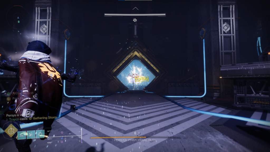 Make sure you have the Arctrician buff on your Guardian. If not, Conduit Minotaurs spawn that you can eliminate to acquire the buff. You want to wait until the center nodes open up again, like how you started this encounter, and activate them all again. This closes the main door behind Persys, containing the explosion. When the doors open up, Persys is vulnerable. You can damage them for roughly 20 seconds before their shield returns.