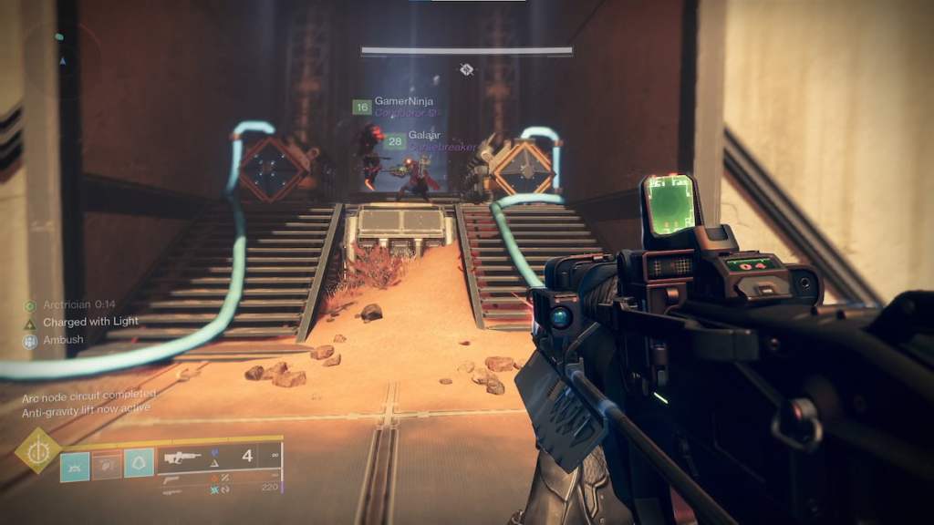 With those all activated, two nodes on the outer pillars open up, one on each side. Activate those currents and activate each node until you reach the next room, completing the circuit. Once they both have been activated, a notification reads, “Reactor Isolation Chamber Active … Take Cover.” You will need to return to the location you started.