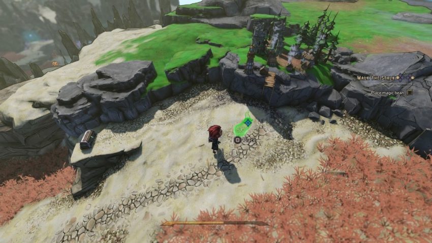 After accepting the quest, pick up the magic bean and bring it over to a nearby area marked on your map. Place the bean down and flick it into the nearby village. This will cause a massive beanstalk to grow and a new area will appear that you can travel to. Travel to Tangledrift to continue the quest. Once you get to Tangledrift, follow the path as it loops up to a platform above you where you will find a large house. Go inside and talk to the Punchfather.