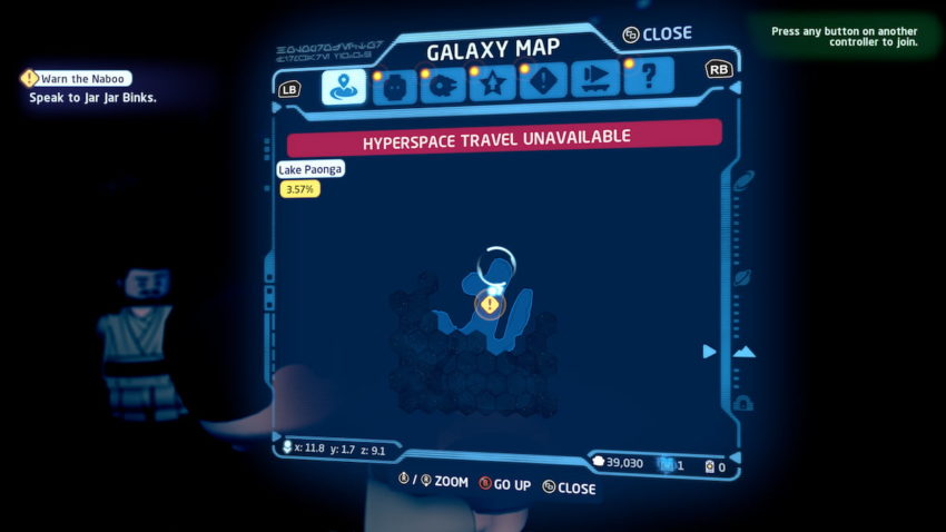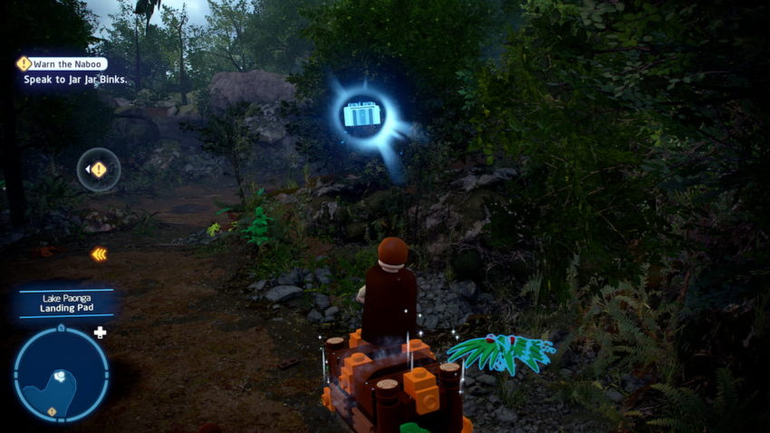 You can complete the Towering in the Treeline puzzle during Episode 1, on Naboo, at Lake Paonga. This area is available during the first mission after Qui-Gon Jinn and Obi-Wan Kenobi have made it off of the Trade Federation ship, and have landed on Naboo. You’ll have met Jar-Jar Binks by this point.