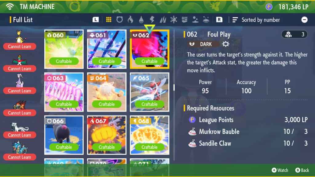 Once you have all the materials for TM 062 Foul Play, follow the steps below.