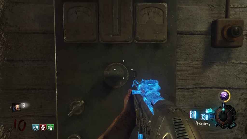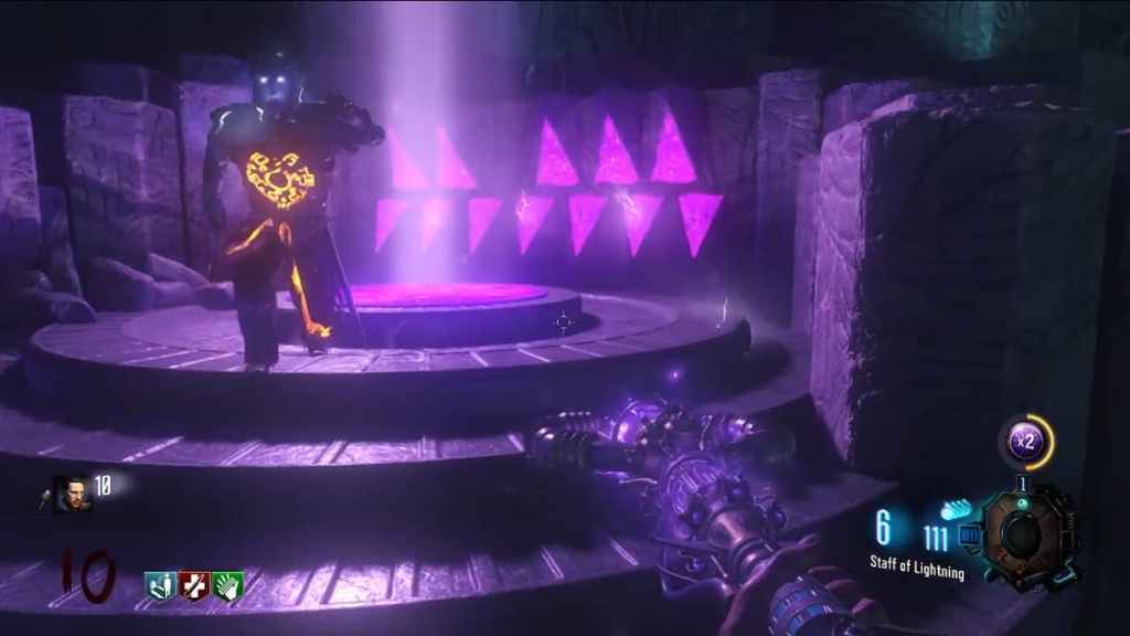 To build the Lightning Staff, you must gather the purple Lightning Record, Lightning Crystal, and three staff parts. First, let’s get the Record. It is located in the area of Generator 4 (where Juggernog is). These are the three locations it can be: