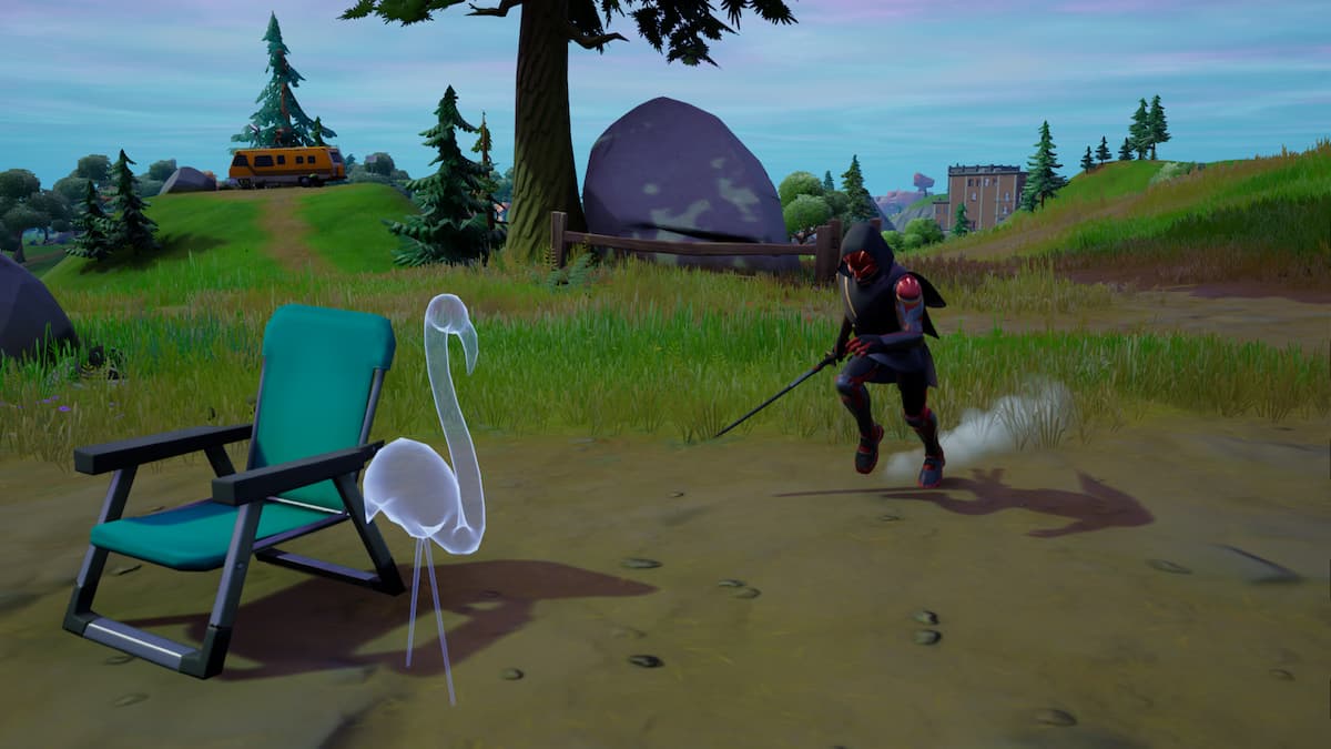 The flamingo ornaments in Happy Camper are more spread than in Shell or High Water, but it may be more a suitable location for some, as it typically isn’t visited by many opponents. To find the landmark, simply head west of Loot Lake where there are a collection of RVs and campfires.