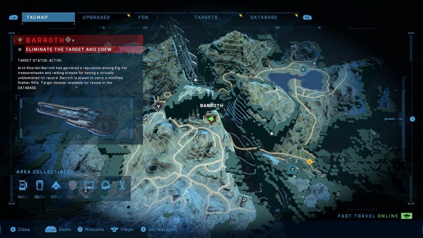This sniper can be found northwest of FOB Lima and southeast of Riven Gate. It’s on top of a highly elevated hill. Once you arrive at the location, you’ll find Barroth stalking above a wave of enemies on the right, perched on a cliff.