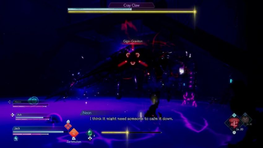 - Attraction Field: The boss will lob an orb of Gravity at a target area. This area will pull party members in, dealing repeated damage. This attack can technically be parried, but it hits multiple times and can burn through your Break Gauge. The field persists for several seconds, allowing Cray Claw to attack as well.